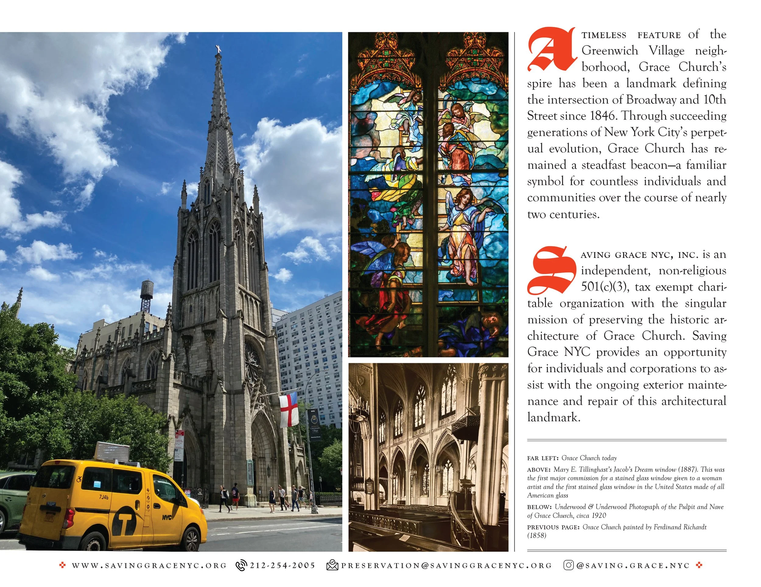 Grace Church on Broadway is one of New York City's oldest churches. The design strategy for new outreach materials draws inspiration from the Church's extensive archives of books and other printed matter and combines it with contemporary elements to honor the past while looking to the future.